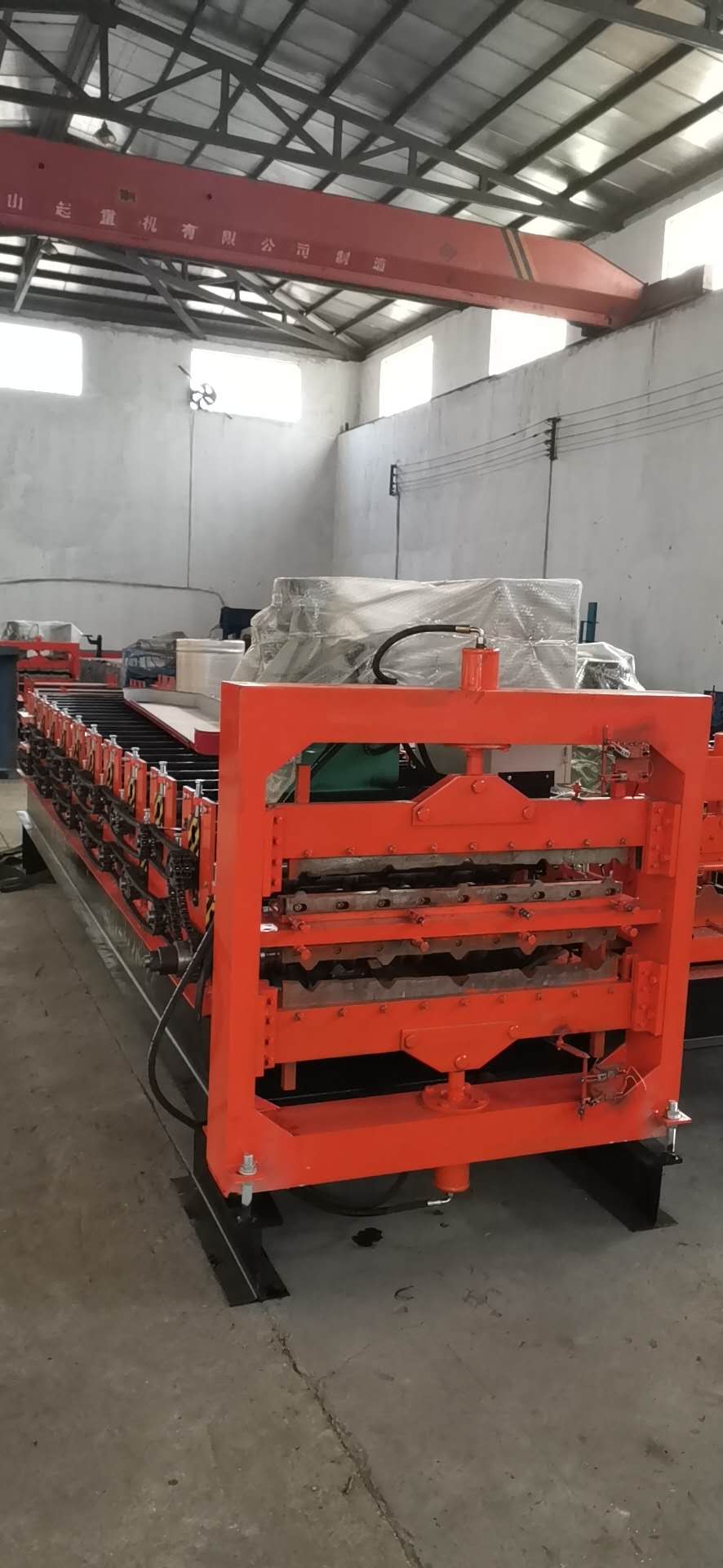 压瓦机其组成部门包括:彩钢压瓦机整机、PLC电脑控制系统、液压泵站系统、全自动后剪切系统。设备特点:彩钢板设备采用自动控制软件,彩钢压瓦机实现生产信息化管理,整机自动控制系统采用高度集成的网络,使自动化系统功能提高。